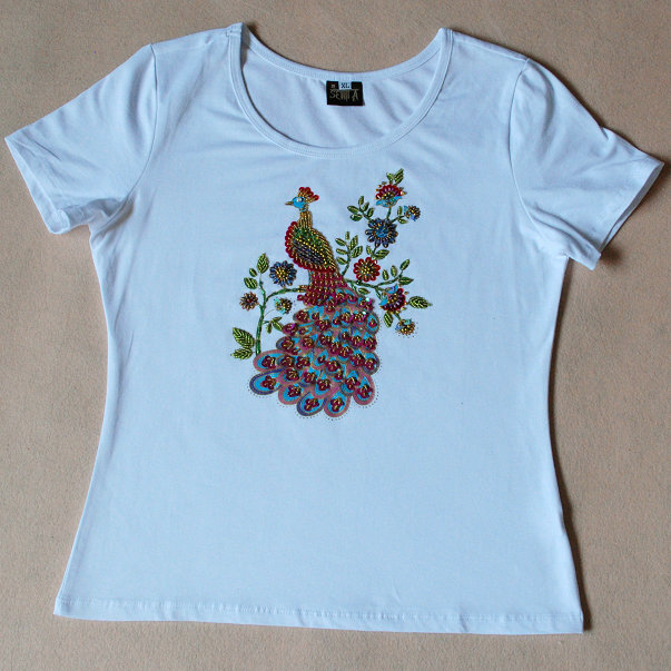 泰绣棉T——白色单凤凰